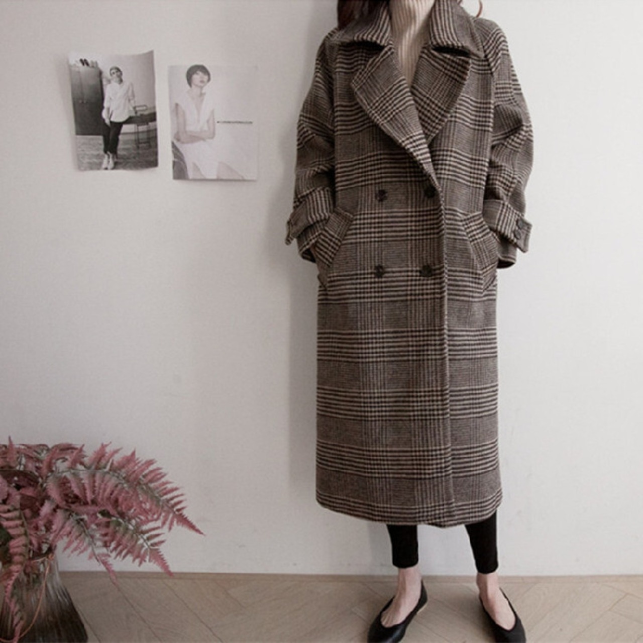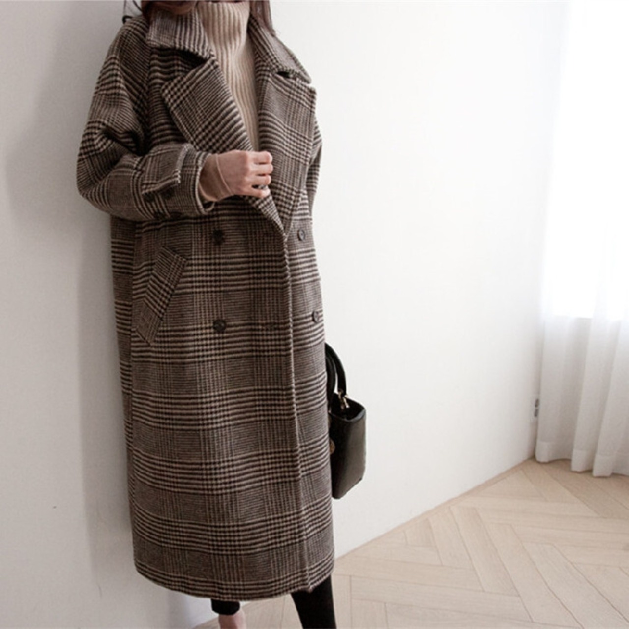 【1212-2】おしゃれの必需品韓国ファッション中・長セクション チェック柄トレンチコート大きいサイズ 暖かい コート