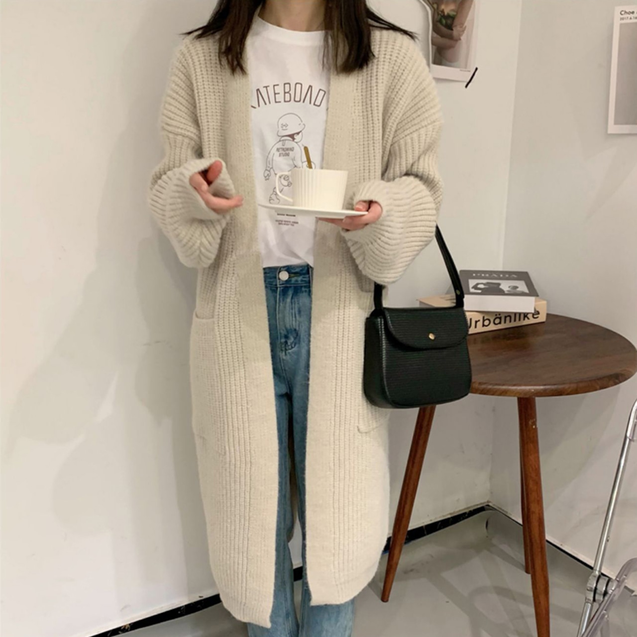 リラックススタイルから通勤スタイルまで使える、優秀なロングニットカーディガン