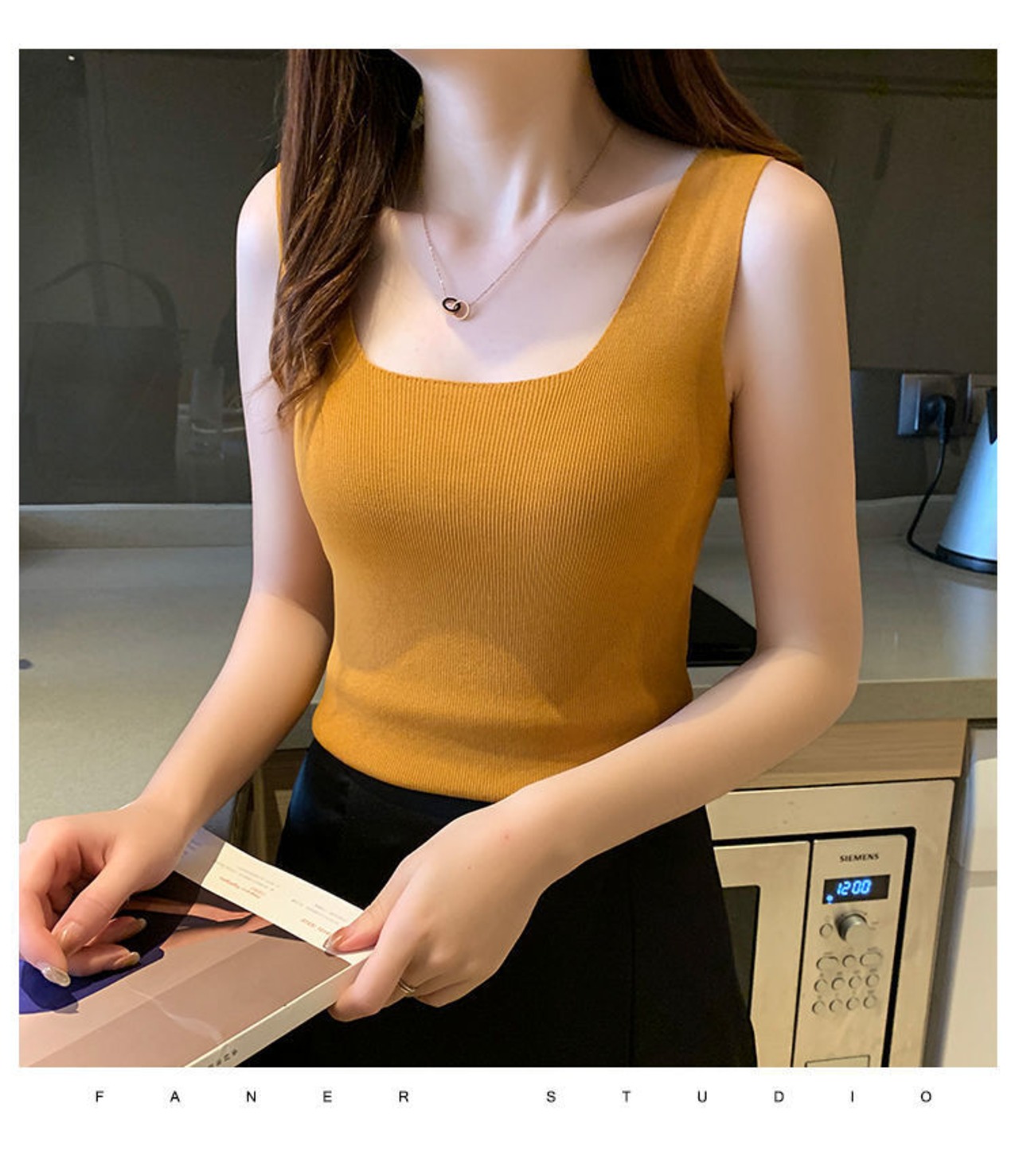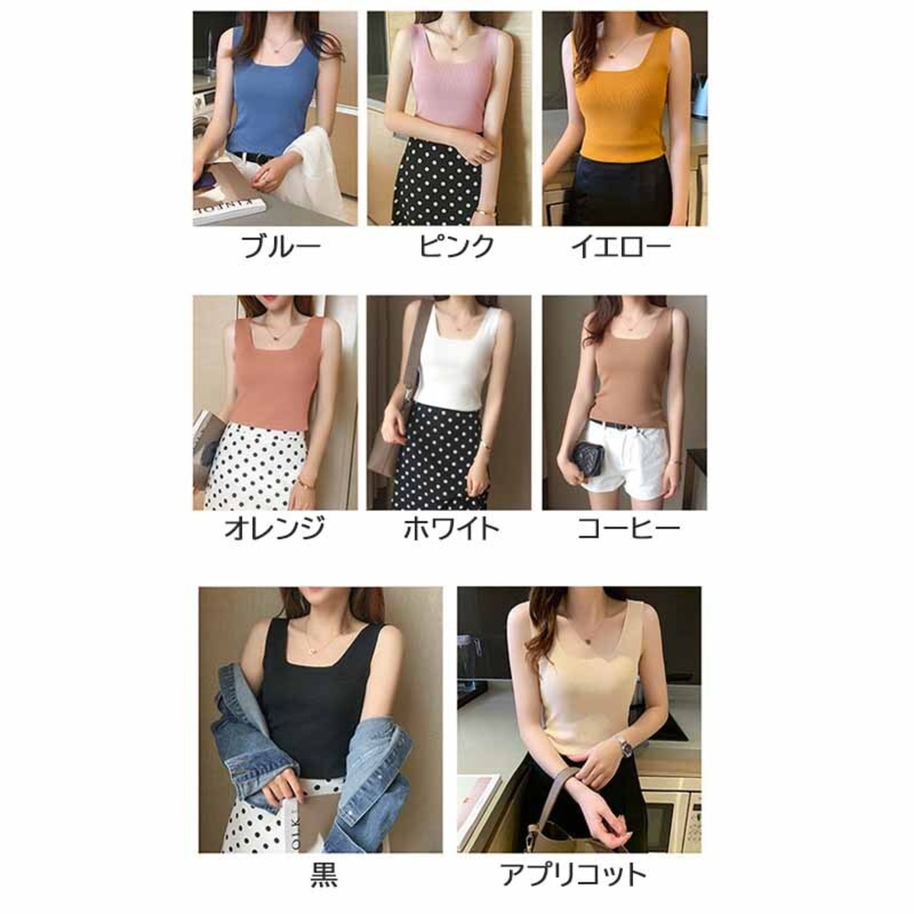 【0124-1】2023新作 レディース ニット 冷感 タンクトップ ノースリーブ インナー 伸縮性 大人 無地 通勤 スクエア