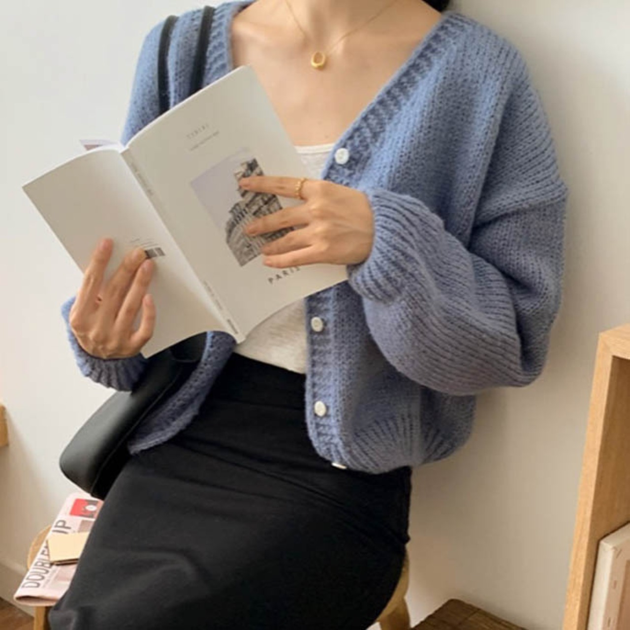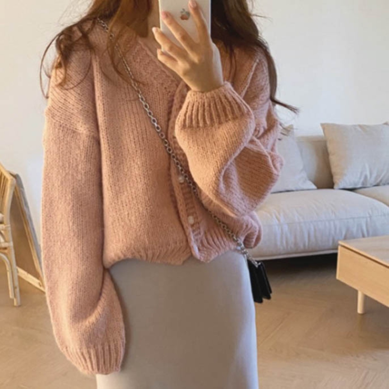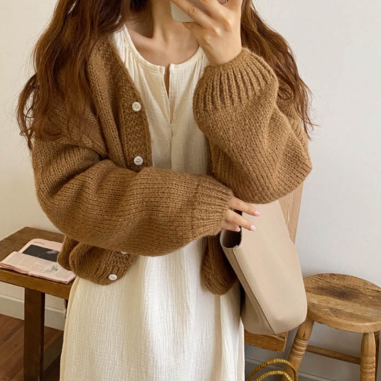 大きめのゆるいシルエットがナチュラルでフェミニンな印象コクーンカーディガン