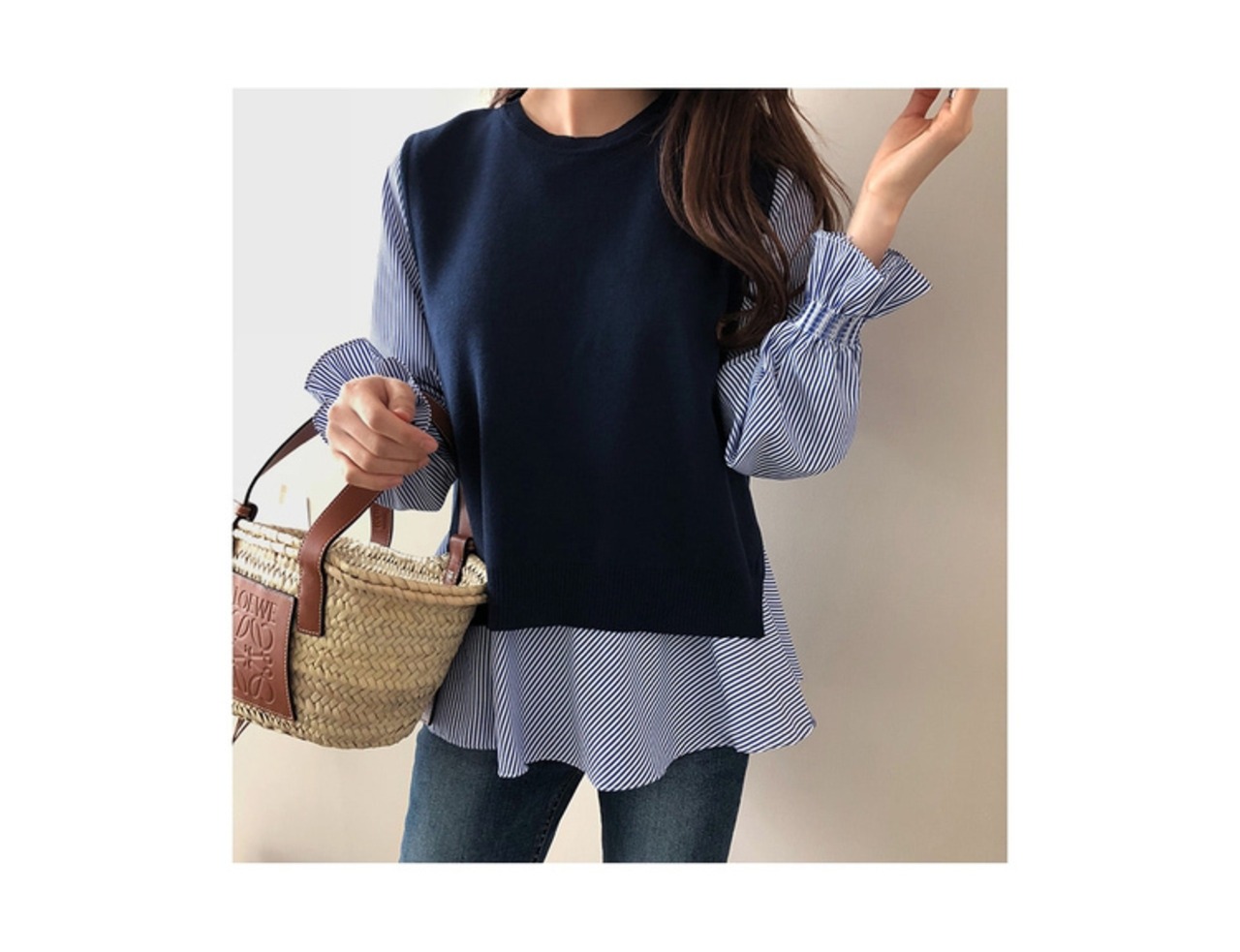 ネイビ(ニットベスト)はストライフのシャツが付いています。