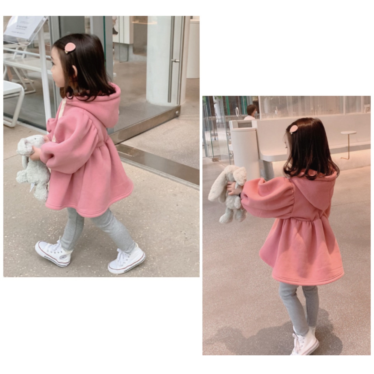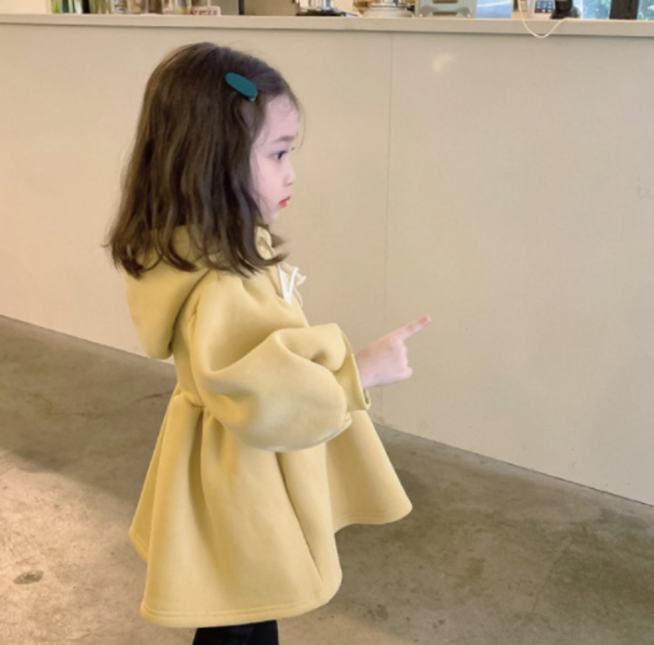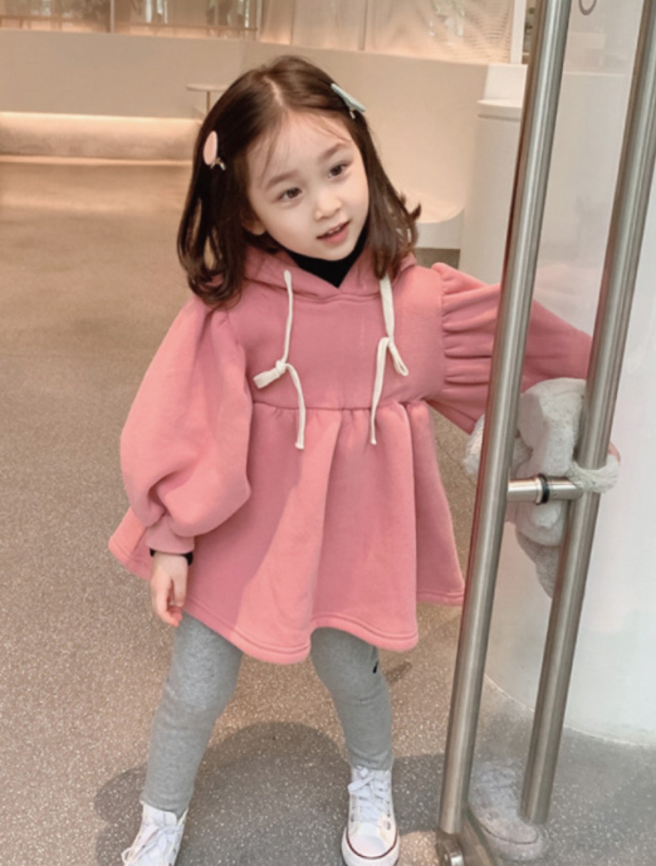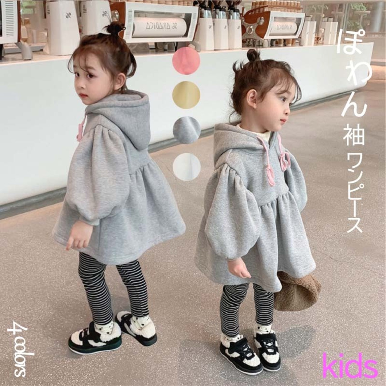 【0214-3】子供服 女の子 キッズ ぽわん袖 フード トップス ワンピ 厚手 長袖 トレンド